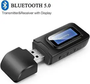 USB Bluetooth 5.0 Audio Transmitter Receiver with LCD Display, 2 in 1 Portable Visualization Bluetooth Adapter,3.5MM Wireless Bluetooth Adapter for PC,TV,Wired Speaker,Headphones and Car