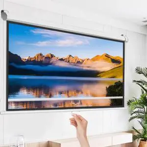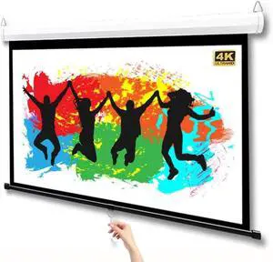 60'' Projector Screen Manual Pull Down Retractable Movie Screen 16:9 HD Projector Screen Anti-Crease Projection Screen Drop-Down Screen with Auto Locking(White Horizontal bar,60inch4:3)