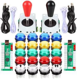 2 Player Arcade Games DIY Kit Parts 2 Ellipse Oval Joystick Handles + 20 LED lit Arcade Buttons (Mixed Color Kit)