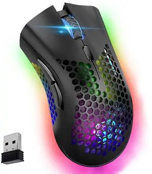 Jansicotek Rechargeable 2.4Ghz Wireless Gaming Mouse with USB Receiver,7 Colors Backlit for MacBook, Computer PC, Laptop (600Mah Lithium Battery) (Black)Limited time offer, ends 04/22