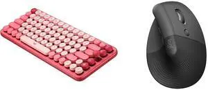 Logitech POP Mechanical Wireless Keyboard - Customizable Emoji Keys, Durable Compact Design, Bluetooth or USB Connectivity, Multi-Device, OS Compatible - Heartbreaker Rose Logitech Lift Vertical Ergonomic Mouse, Wireless, Bluetooth or Logi