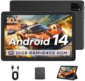 Tablet 10.1-inch Android 14 Tablet - 10GB RAM, 64GB + 256GB Expandable Storage, Octa-Core Processor, 8-Hour Battery, HD 800 x 1280 IPS Touchscreen, Wi-Fi 5 | Bluetooth 5.0, Dual Cameras - Light Grey
