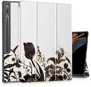 Tuiklol Tablet Case for Samsung Tab S10 Ultra (2024 Release) / Tab S9 Ultra 14.6 Inch (2023 Release), Built-on Pencil Holder Slim Hard Shell Case Trifold Stand Cover Auto Wake/Sleep, Line Flowers