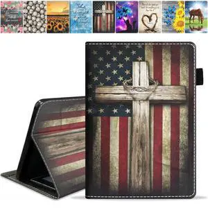 TBXOSTN Case for All-New Fire Max 11 Tablet (11", 13th Generation, 2023 Release), PU Leather Stand Cover with Card Slot & Auto Wake Sleep, American Flag and Cross