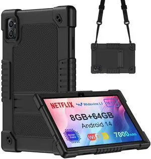 Kebiory Compatible with TabneraX Model UTbook 10 inch Winsing T30W 10" Tablet Case Kids Friendly Soft Silicone & Stand Adjustable Shoulder Strap for TabneraX UTbook/AWOW UTBook_14 10 inch (Black)