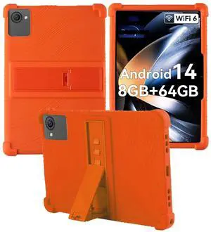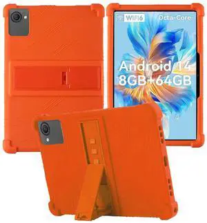 for ZOFYWNAS C10 Tablet 10 Inch Android 14 TabletsFace ID Android Tablet Model Case,Soft Silicone Adjustable Stand Cover Lightweight Kids Friendly,Orange.