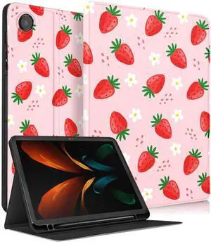 Uppuppy for Samsung Galaxy Tab A8 Case 10.5 Inch Kids Cute Girls Folio Women Girly Kawaii Teens Strawberry Pretty Aesthetic Unique Tablet Cover for Samsung A8 Tab Cases SM-X200/X205/X207