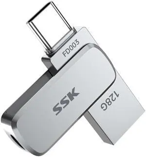 SSK 128GB Flash Drive USB C Thumb Drive up to 240 MB/s, Dual USB FlashDrive USB-C and A 3.2, Zinc Pendrive Memory Stick for iPhone 15/16Pro/Win/Android OTG with Water, Dust, and Drop Resistance