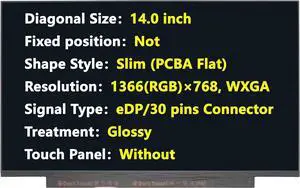 Grade A+ New Screen Replacement for B140XTN07.3, 14.0", HD 1366×768 WXGA, eDP/30 pins Connector, Glossy, Non-Touch, LED LCD Display with Tape