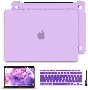 TWOLSKOO for MacBook Air 13.3 inch Case 2021 2020 2019 2018 Release M1 A2337 A2179 A1932 with Touch ID, Plastic Hard Shell Case & Keyboard Cover & Type C Adapter, Purple Peony