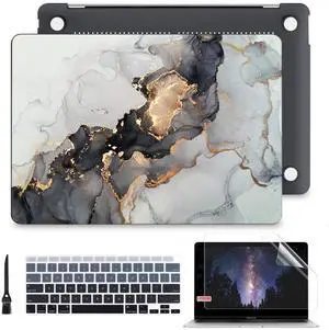 Batianda Case for MacBook Air 13 inch 2020 2019 2018 Release A2337 M1 A2179 A1932, Plastic Hard Shell +Keyboard Cover+Screen Protector for MacBook Air 13 inch Touch ID & Retina,Grey & Gold Ink