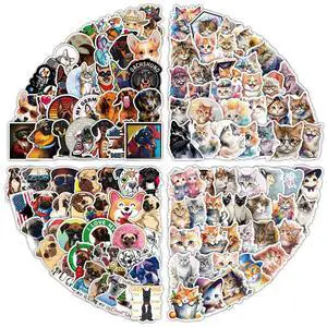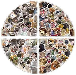 200Pcs Cat and Dog Meme Stickers, Funny Meme Stickers for Teens and Adults, Realistic Pets Decals Vinyl Stickers for Laptop Water Bottle Scrapbook Phones