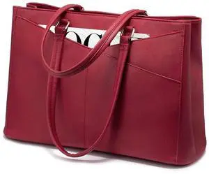 LOVEVOOK Laptop Bag for Women 15.6 Inch Tote Bags Waterproof Leather Briefcase Computer Women Business Office Work Bag,Red