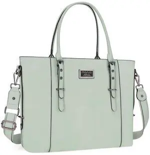 MOSISO PU Leather Laptop Tote Bag for Women (15-16 inch), Waterproof Large Capacity Business Work Briefcase Shoulder Laptop Bag, Sage Green