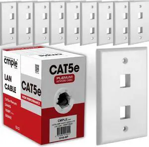 Cmple - Cat5e Plenum Cable 1000ft White 350MHz, Perfect for Home and Office + 1 Port Keystone Wall Plate 1 Gang Standard Ethernet Wall Plate Compatible with HDMI Keystone - White Bundle