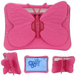 Allytechgroup Kids Case for Samsung Galaxy Tab S10+/S9 FE+/S9+/S8+/S7+/S7 FE 12.4" Butterfly Kickstand Shockproof Cover Case, Rose
