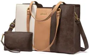 LOVEVOOK 15.6 Inch Laptop Bag for Women - Waterproof Work Bag for Women & Vintage Laptop Tote Bag with Wristlet, Beige/Coffee