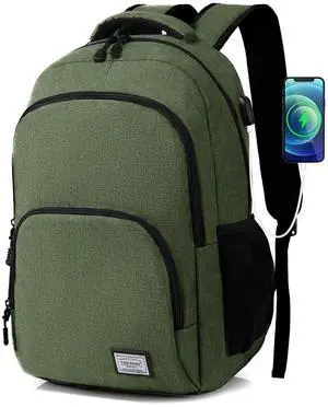 YAMTION 17 Inch Laptop Backpack for Women Bookbag School Backpack with Charger,Aesthetic Computer Backpacks for High School Teen Girls Office College Students Nursing Work,Mochila Mujer,Beige