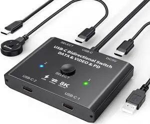 ![2 Port USB C Switch, Bi-Directional [2 in 1 Out / 1 in 2 Out] USB C Switcher 2 Computers, USB C KVM Switch Support 8K @60Hz/4K@120Hz Video/10Gbps Data Transfer/100W Charging, with 2 USB-C Cables 2 Port USB C Switch, Bi-Directional [2 in 1 Out / 1 in 2 Out] USB C Switcher 2 Computers, USB C KVM Switch Support 8K @60Hz/4K@120Hz Video/10Gbps Data Transfer/100W Charging, with 2 USB-C Cables](https://c1.neweggimages.com/productimage/nb300/B4D1S24122312AYL6BB.jpg)