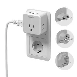 All European UK Travel Plug Adapter Kit, International Detachable with 3 Outlet 3 USB Charger (1 USB C), Type C/G/E/F EU Ireland Power Adaptor, US to Europe Italy Spain France Greece