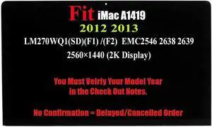 NUOLAISUN Replacement LM270WQ1(SD)(F1) SDF1 SD F1 SD F2 Compatible with iMac A1419 27" 2K LCD Screen with Glass Late 2012 2013 EMC:2639