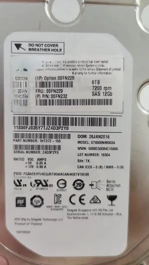For 00FN228 00FN229 6TB SAS 12GB 7.2K X3550 X3650 M5 HDD