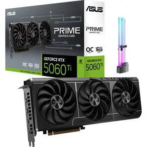 ASUS Prime GeForce RTX 5060 Ti OC 16GB GDDR7 Graphics Card, PCIe 5.0, Triple Axial-tech Fans, SFF-Ready 2.5-Slot, 1x HDMI 2.1b, 3x DP 2.1b, Includes GPU Holder