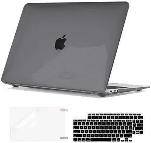 Seanai Compatible with MacBook Air 13 inch Case 2021 2020 2019 2018 Release M1 A2337 A2179 A1932, Plastic Hard Shell Cover Keyboard Skin Screen Film for MacBook Air 13 Inch M1 Case, Crystal Black