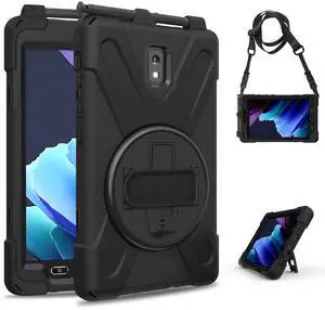 Case for Samsung Galaxy Tab Active 3 8" T570 T575 T577, Heavy Duty Shockproof Rugged 3 Layer Kids Durable Case with 360 Swivel Kickstand, Shoulder Strap & Hand Strap