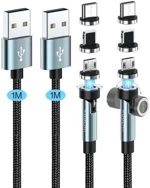 Aripps Magnetic Charging Cable 4 Pack (3.3ft/6.6ft/6.6ft/10ft), 540 Degree Rotating Magnet Phone Charger Cable, 3 in 1 Nylon Braided Magnetic USB Cable for Micro,Type C and iProduct Device