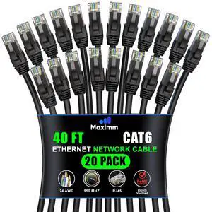 Maximm Cat 6 Ethernet Cable 6 Ft, 100% Pure Copper, Cat6 Cable (24 Pack) LAN Cable, Internet Cable, Patch Cable and Network Cable - UTP (Black) 6 Feet