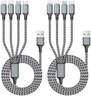 Multi Charging Cable 6FT 2Pack Multi Charger Cable 4 in 1 Universal Multiple USB Fast Charging Cord with Type-C, Micro USB Port for Most Cell Phone, Tablets