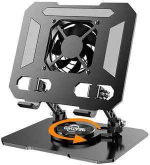 360 Rotating Tablet Desk Stand Holder with USB CoolerCarbon Steel Frame Dual Rod Mount Support for iPad Pro 13 12 11 Air Mini 5 4 3 Samsung Tab E-Reader (Black with Built-in Cooler)