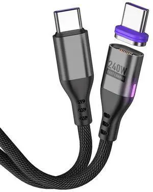 240W Magnetic Charging Cable 180°Rotating USBC to USB C Magnetic Data Cable Micro USB Phone Fast Charger Cable Data Transfer for Laptop/Tablet/Smart Phone (6ft)