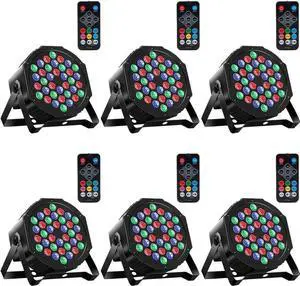 Par Lights 6 Pack, RGB 36LEDs Stage Light Sound Activated DMX Control, 7 Lighting Modes with Remote Control for Festival DJ Party Club KTV Disco6 Pack