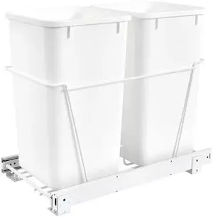 RV-15PB-2 S Double 27-Quart Chrome Wire Bottom Mount Pullout Kitchen Waste Trash Can Container Bin with Full-Extension Slides, White