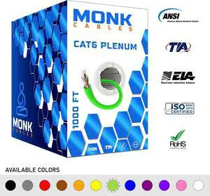 CAT6 Plenum 1000ft Cable | Solid Internet Wire | CMP Plenum Rated | 23AWG 550MHz UTP | Network Ethernet Cable Bulk Green