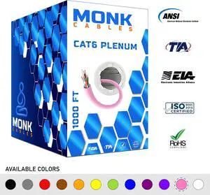 CAT6 Plenum 1000ft Cable | Solid Internet Wire | CMP Plenum Rated | 23AWG 550MHz UTP | Network Ethernet Cable Bulk Pink