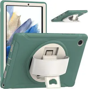 Galaxy Tab A8 Case 10.5 Inch 2022 (SM-X200/X205/X207), Rugged Heavy Duty Shockproof Case with Hand Strap Rotating Kickstand Protective Cover Case for 10.5" Galaxy Tab A8 2022 Dark Green