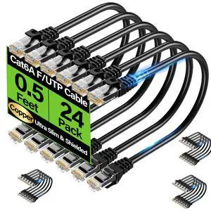 ZOERAX Cat6a Patch Cables 1ft (24 Pack), Slim Cat6 Ethernet Patch Cable 10Gbps 550MHz, RJ45, Gold-Plated Connectors, Internet for PC, TV, Tablet, Router, Printer, Servers, IT Data Center