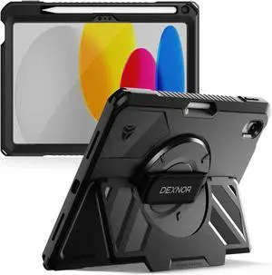 Case for iPad (A16) 11th/10th Generation 2025/2022 (11/10.9) Rugged Protective Case with 360° Rotating Hand Strap& Stand & Screen Protector & Pencil Holder Shockproof Full-Body Cover Black