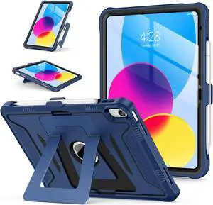 Case for iPad (A16) 11th/10th Generation (11-Inch 2025/10.9-Inch 2022) with Screen Protector and Kickstands Rugged Full Body Heavy Duty Shockproof Protective Cover - Black Navy