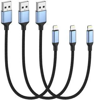 2FT iPhone Charging Cable 3-Pack [MFi Certified] USB to Lightning Cable 2ft for Car Fast Charging Braided Short iPhone Cord Compatible with iPhone 14/13/12/11Pro/X/XR/8/7/6s/Plus/SE/iPad