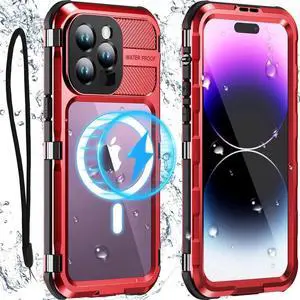 For iPhone 14 Pro Max Case Waterproof, Compatible with Magsafe Magnetic Protective iPhone 14 Pro Max Phone Case, Water Proof Mag Safe Magnet Shockproof Full Body Clear Back Cover with Screen Protector