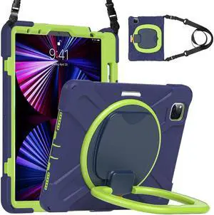 Case for iPad Pro 11 inch 2022 2021 2020 2018/ iPad Air 4 / Air 5 10.9 Inch, 360° Rotating Kickstand Shockproof Cover with Built-in Stand & Shoulder Strap & Pencil Holder Blue