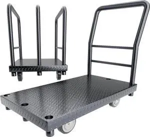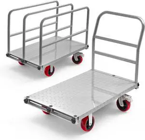 2in1 Panel Cart, Drywall Cart Platform Trucks 2500 lbs Capacity Lumber Cart Flatbed Cart 38" x 24" Heavy Duty Push Cart with 1Front and 3 Side Handrails& Swivel Casters