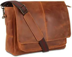 Handmade Full Grain Buffalo Leather Messenger Bag 16 Inch ^^ Laptop Satchel Briefcase for Men & Women ^^ Vintage Office Computer Bag with Adjustable Strap (Fits 15.6 Laptop)