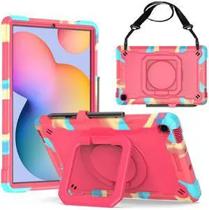 zukof Case for Samsung Galaxy Tab S6 Lite Case 10.4" 2024/2022/2020 (SM-P620/P625/P610/P613/P617/P615/P619) Shockproof Protective Case with Rotating Stand, Shoulder Strap, and Pen Holder, Rainbow Pink