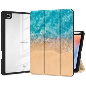 Batianda Case for Samsung Galaxy Tab S6 Lite 10.4 inch 2022/2020 Model (SM-P610/P613/P615/P619) with S Pen Holder Shockproof Cover with Clear Transparent Back Shell TPU Bumper Auto Sleep/Wake,Beach