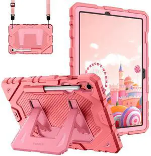 Fintie Kids Friendly Case for Samsung Galaxy Tab S10 Lite/ S10 FE/ S9 FE 10.9 Inch/Tab S9 11 Inch, Fully-Body Rugged Heavy Duty Shockproof Protective Case with Kickstand & Shoulder Strap, Pink